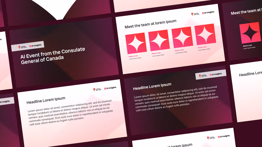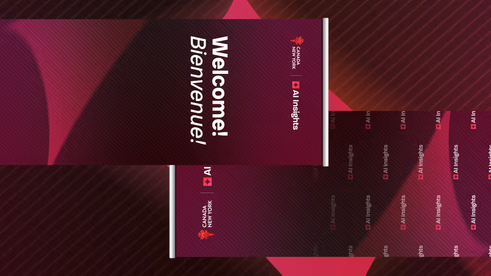 Canada’s AI ecosystem needed a polished stage in the world’s largest markets, prompting the Consulate to seek an event identity strong enough to stand alongside the Consulate General of Canada in New York, along with adaptable templates that allowed startups to add their own logos and content without compromising design consistency, and collateral built for seamless cross-platform use, bilingual delivery, and print-ready production.